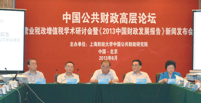 2013年6月29日,由上海财经大学中国公共财政研究院主办的首届“中国公共财政高层论坛——营业税改增值税学术研讨会”暨《2013中国财政发展报告》新闻发布会在北京举行。