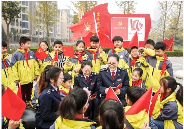 安徽省淮北市国家税务局组织青年党员志愿者走进小学校外课堂,与少先队员们一起话党史、学队史。 樊 鹏 杜 鹏 文/图