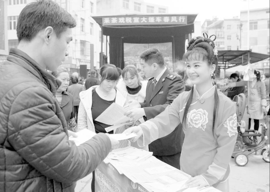中国税务 2018年 第3期 图片新闻 图片新闻 ◎ 兰志勇 邹忠 上一篇 下一篇 江西省高安市地方税务局与高安采茶剧团联合组织了“采茶戏税宣大篷车春风行”活动,在采茶戏中巧妙穿插税收政策,让群众在欣赏文艺节目的同时接受税法知识。兰志勇 邹 忠 文/图