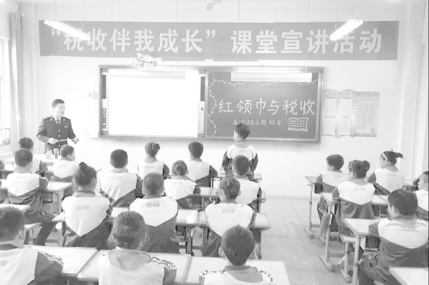 山西省曲沃县国家税务局以“红领巾与税收”为主题,在当地小学开展税收宣讲活动。 张 峰 文/图