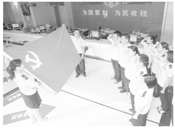 江西省宜春市税务部门在“七一”前夕,开展党员重温入党誓词等活动,庆祝党的生日。 施建平 邹 忠 文/图