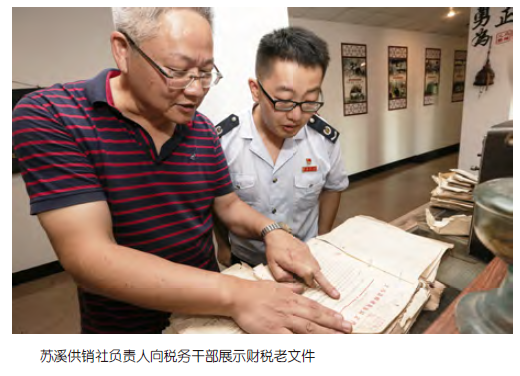 义乌市苏溪供销合作社成立于1950 年2 月,是义乌“年纪”最大的企业。“为了促进供销合作社商业发展,国家从各方面给予扶助……新成立的供销合作社第一年免交所得税,减征营业税20%……这对于供销合作社的发展起到了十分积极的促进作用。”这段话,记载在1987 年3 月版的《义乌县供销社志》上,是新中国成立后,纳税人对新中国税收减免政策的最早记述之一。“各财税所:关于生产队和社员自产的藕粉出售给国营和供销合作社如何征税问题……今年仍可按原规定不征税。”这是供销合作社1973 年收到的财税文件,文件版头还显示着“义乌县财政税务局”,今天财政和税务早已分开,税务部门也经历了1994 年的国税地税机构分设和2018 年的国税地税征管体制改革,而始终不变的是税务部门的为民情怀。“这些年,国家出台的一系列减税降费政策,给我们供销合作社注入了发展动力。得益于小微企业标准扩围等政策,2019 年我们减税20 多万元。省下的钱,我们将还利于消费者。”供销合作社的“掌门人”骆坚旗对未来信心满满。