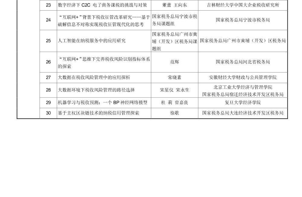 2019年度“互联网+税务”征文获奖名单