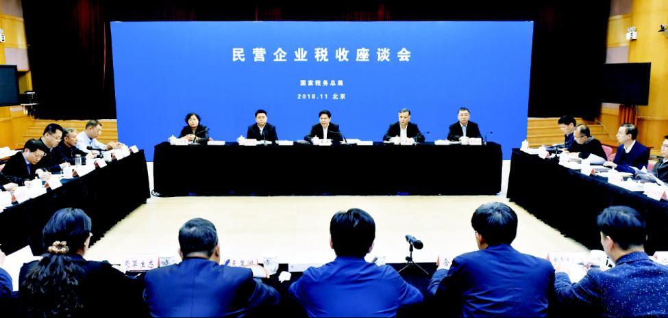 图为2018 年11 月8 日,国家税务总局召开民营企业税收座谈会,进一步深入学习贯彻习近平总书记在民营企业座谈会上的重要讲话精神,听取民营企业涉税诉求,共商税收助力民营经济发展良策。