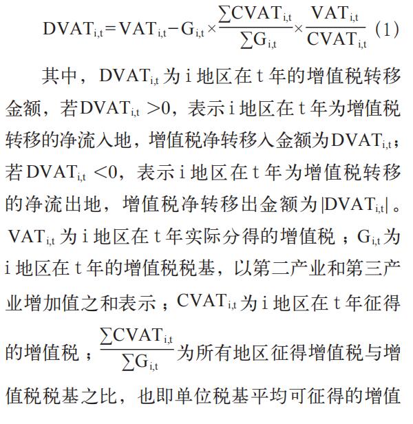 基于生产地原则的增值税转移计算公式如式(1)所示。