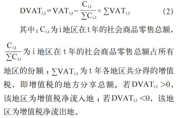 基于消费地原则的增值税转移的计算公式如 式(2)所示。