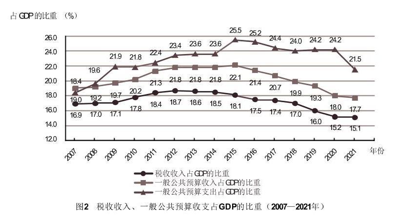 6 本文2007—2020年税收收入、一般公共预算收支数据来自《中国统计年鉴2021》,2021年税收收入、一般公共预算收支数据来自:国家统计局.国家数据[EB/OL].[2022-03-31].https://data.stats.gov.cn/easyquery.htm?cn=C01.