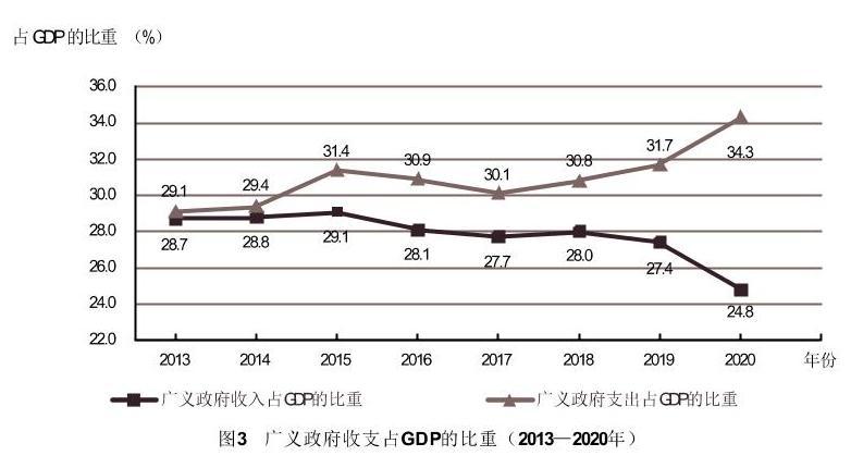 12 广义政府收支数据来自:财政部网站,2016—2020年全国财政决算的广义政府运行。其中,2013年数据来源:http://yss.mof.gov.cn/2016js/201709/t20170928_2714298.htm;2014年数据来源:http://yss.mof.gov.cn/qgczjs/201807/t20180724_2971791.htm;2015年数据来源:http://yss.mof.gov.cn/2018czjs/201908/t20190801_3345951.htm;2016年、2017年数据来源:http://yss.mof.gov.cn/2019qgczjs/202008/t20200826_3575501.htm;2018—2020年数据来源:http://yss.mof.gov.cn/2020zyjs/202110/t20211011_3757545.htm。