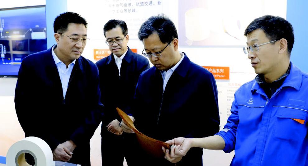 国家税务总局宁夏回族自治区税务局党委书记、局长孙群(右二)在宁夏宁东能源化工基地企业调研留抵退税政策落实情况。