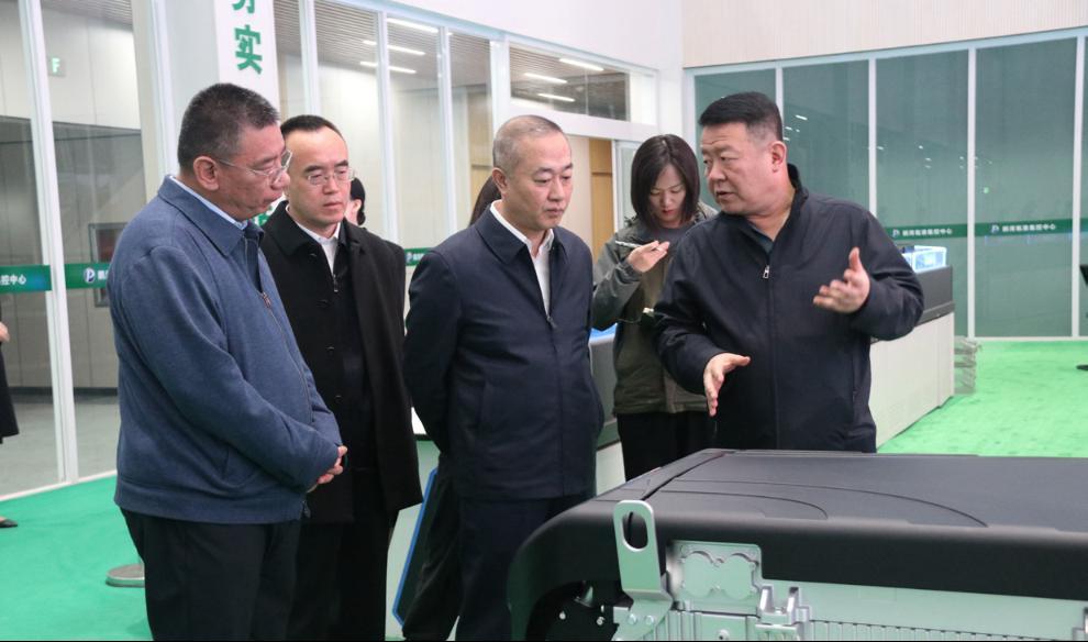 齐志宏(左三)在山西省鹏飞集团调研了解产品开发、产业链条延伸、技术研发及享受税费优惠政策情况。