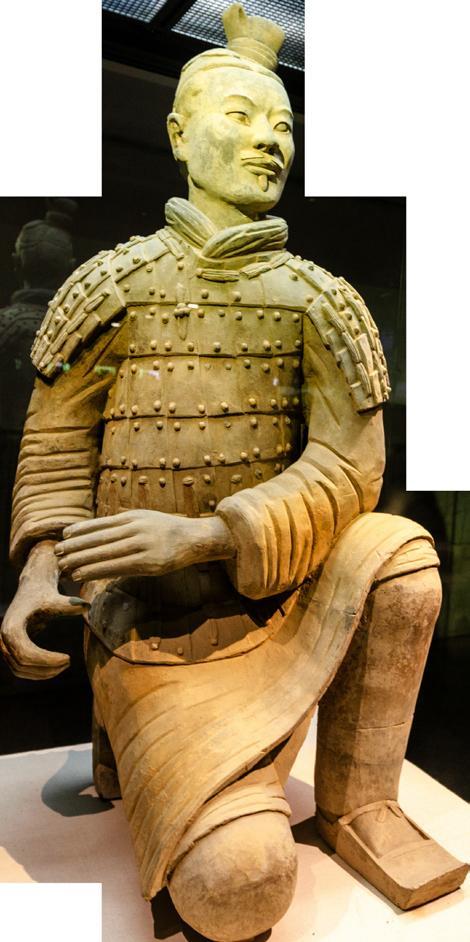 真人大小、形态逼真的秦兵马俑向人们展示出古代东方文化的灿烂辉煌,那擐甲执兵、英姿勃勃的军阵仿佛仍在严阵以待,只要将军令下、战鼓擂响,他们就会如猛虎下山般势如破竹、所向披靡。