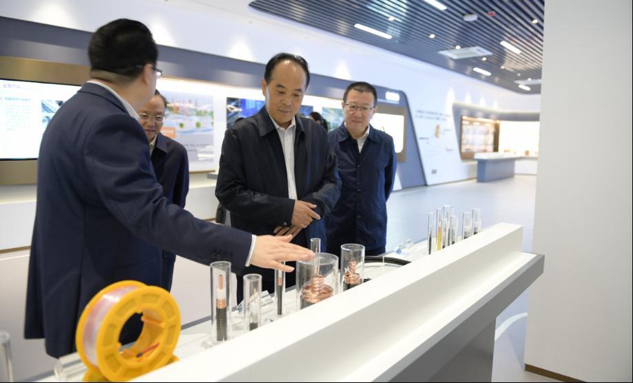 2023 年11 月9 日,范扎根(右二)在鹰潭市开展调研,深入江西力博科诚铜业有限公司了解情况。