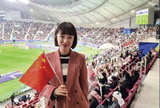 陆金金在2023 年卡塔尔亚洲杯期间观看卡塔尔vs 中国队小组赛