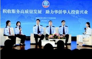 江门,中国第一侨乡,有530 多万海内外华侨华人和港澳台同胞分布在145 个国家和地区。怎样吸引更多的侨胞回乡投资创业,将丰富的“侨资源”转化为发展优势呢?江门税务“青年助侨团”的成员们决定举办一场全球直播,向华侨华人讲好税费优惠政策和惠侨助侨服务举措。2023 年5 月,这场“税收服务高质量发展 助力华侨华人投资兴业”专题直播在中央广播电视总台国际在线、央视视频移动网、新华社现场云、YouTube、Facebook 等海内外平台播出,累计在线观看人次近27 万。