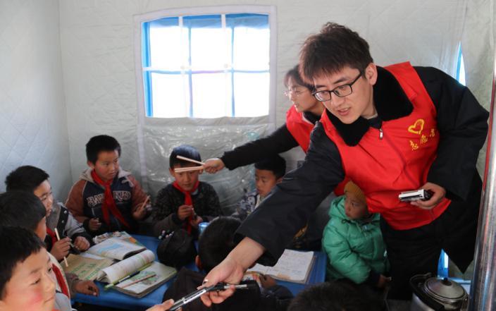 国家税务总局积石山县税务局志愿者在帮扶村震后临时安置点开设“帐篷学堂”