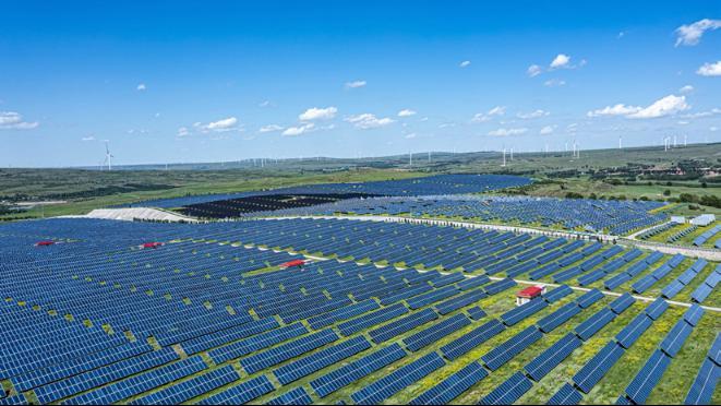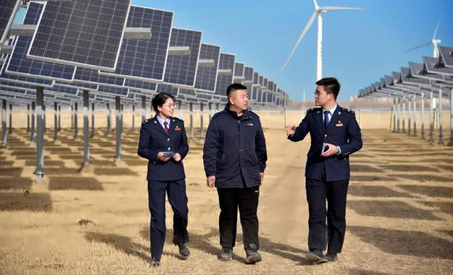 夜幕降临,北京城内大街小巷灯火通明,在200 余公里外的张家口市张北县坝上地区,高耸近百米的“大风车”和犹如蓝色海洋的“光伏板”产出的绿色电能正跨越重重山峦输送到此,“张北的风点亮北京的灯”的浪漫故事仍在书写。