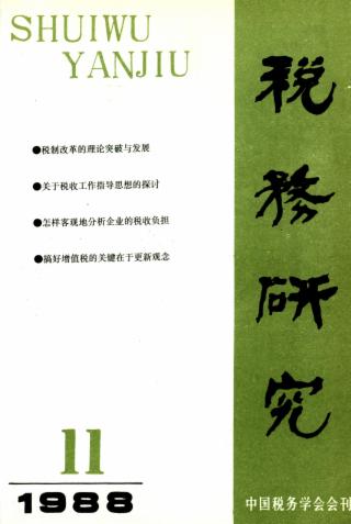 1988年 第11期 论坛 税制改革的理论突破与发展 王平武 陈德炎 郑琦 关于税收工作指导思想的探讨 栾维晋 税收要为抑制不合理的消费基金过快增长服务 张富珍 社会主义初级阶段治税指导思想的思索 冷报德 我国税制改革必须适应当前的经济形势 李秋荣 税制建设 论承包制与价格改革对接的必要条件 ——进一步完善税制 高莉 完善盐税制度的设想 魏正曙 王德昌 刘伯羽 浅谈筵席税的几个问题 辛彤 完善煤炭资源税计征办法初探 胡先明 关于在我国开征遗产税和赠与税的探讨 张连顺 伍舫 刘丽坚 于跃才 税收负担 怎样客观地分析企业的税收负担 张云贵 工作研究 搞好增值税的关键在于更新观念 王文鼎 改进增值税税额计算与征收方法 张恒 征收管理 深入贯彻“税收征管条例”强化税收征管工作 马千里 谈税务专管员在运用税收杠杆中的地位和作用 曹瑞璞 强化税收管理引导私营企业健康发展 王国英 袁瑞奇 陈顺兴 略论税收管理的发展趋势 胡传权 国际税收 借鉴匈牙利税制改革经验进一步完善我国税收制度 丁淼 税史 湘鄂西革命根据地的税收制度 登耳 禾火 税务管理讲座 第十讲 特定目的税征收管理 王汝琳