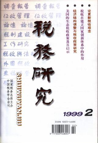 1999年 第2期 论坛 论更新税收观念 高培勇 税收在建立国家创新体系中的作用 迎接知识经济的挑战——税收能做些什么 吴利群 借鉴国外经验 完善我国税收优惠政策 天津市国际税收研究会《税收优惠》课题组 浅谈税收流失的成因及治理 郑俊生 小资料 我国财政体制的三次改革 税制建设 经济结构调整与税收政策研究 山东省税务学会课题组 执笔人:李庆华 李金龙 许本虎 张斌 经济结构调整对税收影响的分析及对策建议 宁波市国家税务局 宁波市税务学会课题组 执笔人:方炯敏 经济结构与税源增长的关系 吴邦金 占祖武 刘燕 税收分配政策在经济结构调整中的作用 郝中华 对我国个人所得税改革的几点建议 高萍 本刊专稿 关于1998年税收专题调研情况和1999年调研课题的几点思考* 王平武 征收管理 建立增值税专用发票计算机管理监控系统的设想 秦建平 税收与法制 依法治税论要 高炳立 吴西峰 我国税务行政执法程序架构研究 朱钢陵 工作研究 设立我国企业税务会计探析 胡世文 虚开增值税专用发票问题的分析及思考 窦庆菊 外国税收 美国的生态税收政策及其启示 漆亮亮 1999年中国税务学会税收调研课题
