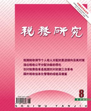 2001年 第8期 论坛 我国税收调节个人收入分配的累退倾向及其对策 钱晟 浅论税收公平分配功能的弱化 张旭伟 当前我国收入差距的实证分析 刘扬 税制建设 农村税费改革是我国农村的第三次革命 ——兼议农民负担问题 黄鹏 农村税费改革试点中的若干问题 杨春玲 借鉴国际经验重构我国涉农负担体系 萧明同 陈灿銮 建立以土地税为中心的农业税制 马国贤 税费改革后乡村组织如何有效运转 ——来自安徽省滁州市南谯区的调查 张松坚 何斌 局长专栏 加快税收信息化建设 促进依法治税 周广仁 建立收入分配税收调控体系 吴云飞 税收征管 集中征收后如何加强税源监控 戚务敬 徐祥乾 时晓 戚媛 纳税主体行为与税收征管 朱门添 来稿摘登 建立个人信用制度有利于加强税收管理 戴祖彬 胡学勤 改进税务档案管理工作的几点建议 郭兆德 陈雪 工作研究 出口退(免)税三种管理办法的比较分析 朱桂芳 郭达伴 必须改变以计划任务为中心的税收工作方法 黄秀珍 强化税收调控收入分配的现实选择 赵晷湘 借鉴国外经验完善我国证券税收制度 黄静 对“软抗税”现象的思考 曹洪臣 税务筹划的合法性思考 李爱红 梁云凤 税收与法制 关于税收法律的解释问题 孙利军 依法治税的现状及展望 孙丽梅 电子商务税收立法初探 王鸿貌 外国税收及借鉴 国外税收信息化管理的经验及借鉴 曾飞 葛开珍 税收国际比较 经济全球化所引起的国际税收竞争及其防治 雷超