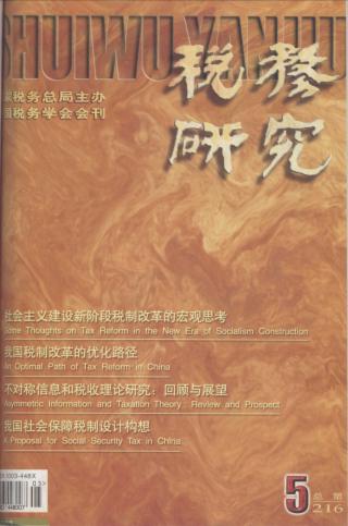 2003年 第5期 论坛 社会主义建设新阶段税制改革的宏观思考 何振一 我国税制改革的优化路径 —最优税收理论模型及政策分析 吴俊培 张青 中西文化差异与税制改革 —以增值税和个人所得税为例 杨斌 经济全球化与税制改革的协调 尚可文 企业并购新趋势及对我国税制的挑战 韩霖 税收政策与降低产业退出壁垒 李文 论文摘萃 依法治税的现实障碍及清除 杜存鸣 朱晓雪 改革农产品收购发票势在必行 隋明奎 热点问题综述 不对称信息和税收理论研究:回顾与展望 邓力平 税制改革 我国社会保障税制设计构想 阎坤 曹亚伟 开征社会保险税相关问题研究 庞凤喜 社会保障税开征应考虑的几个问题 海南省地方税务局课题组 开征社会保障税的现实思考 徐向明 刘晓峰 调研分析 新的经济增长点能否成为新的税源增长点 ——关于山西省调产项目新增税源情况的调查 巨宪华 王久瑾 推进集成电路产业发展的政策建议 王志雄 陈家明 郑麒 税收法治 纳税人意识与依法治税 包子川 李初仕 陈光宇 完善税务行政复议制度的几点意见 王泽民 国际税收 对中外税收协定无差别待遇条款的再认识 朱洪仁 工作探索 “两法”合并与新会计制度若干关系探讨 江心宁 吴嘉泽 调整税收政策促进渝西经济走廊快速发展 万籁天 田宏伟