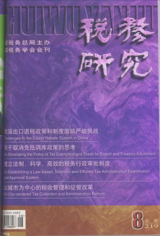 2003年 第8期 本刊特稿 以“三个代表”重要思想为指导推动税收征管工作全面发展 张志勇 付树林 论坛 我国出口退税政策和制度面临严峻挑战 倪红日 关于取消免抵调库政策的思考 郑文敏 “彻底退税”应是我国出口退税的政策目标吗 林高星 局长专栏 构建现代化税收服务新体系 戴子钧 广泛开展纳税服务活动 张学清 税收法治 建立法制、科学、高效的税务行政审批制度 国家税务总局《税务行政审批制度改革研究》课题组 税收法治建设中存在的问题 马学思 对“悬赏协税”的经济学分析 —兼论税收环境综合治理和公民税收意识的培养 李光辉 调研分析 从深圳的实践看“免、抵、退”税政策的完善 罗淑琴 太原市外商投资企业执行“免、抵、退”税政策的调研 山西省太原市国家税务局课题组 税务管理 以城市为中心的税收管理和征管改革 曾国祥 信息系统数据安全分析 张德志 宋兴彬 实行“通报通缴”的现实意义 桂乃希 肖健 李宝生 陈刚 税制改革 论税制改革原则与实施路径 李安泽 刘汉屏 朱门添 电子商务下的增值税课税 林汉隽 适度保护本国产业的税收政策 吴利群 工作探索 建立发票良性运转机制的设想 赵伟 基层税务人员绩效评估体系 郑怀远 实现国税工作的新跨越 方吉杰 论文摘萃 对完善油气田企业增值税的思考 吕庆武 进一步完善综合计划分析体系 沈永奇 完善现行地方税制的几点建议 王伟珩 胡朝军 外国税收与借鉴 美国电子申报纳税:经验与借鉴 魏润水 借鉴国际经验加强我国出口退税管理 李建英 于光 付海廷