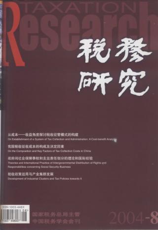 2004年 第8期 论坛 “减负”为实现政府转变职能创造条件 蒋京议 从成本——收益角度探讨税收征管模式的构建 ——以北京市私人机动车车船使用(牌照)税为例 刘桓 姚君 我国税收征收成本的构成及决定因素 庞凤喜 优化纳税服务与交易费用的降低 郭小东 王倩 积极财政政策应进行战略性结构调整 陈榕 王咏明 结构性减税应是扩大内需的政策走势 李志远 朱建文 本刊特稿 三分之一的城市人口住在贫民窟(*) 赛门·威伦 税制改革 政府间社会保障事权和支出责任划分的理论和国际经验 蔡社文 社会保障费改税的难点、问题与对策 丁芸 孟芳娥 社会保障税与社会保障制度优化 李绍光 “费改税”是我国筹措社会保障资金的必然选择 武汉市地方税务局课题组 局长专栏 关于完善税收征管体系的思考 戴子钧 调研分析 税收政策运用与产业集群发展 赵蓓 对江苏税收高速增长的分析 杨抚生 税法理论与实务 法系比较与税法运行的完善 李青云 薛媛 纳税人本位与依法治税 杨琴 税权制衡机制的若干问题 岳松 工作探索 实现北京地税系统纳税服务工作的新跨越 王纪平 优化纳税服务的思路 耿金跃 现行税收征管模式的适应性分析 曾纪芬 肖刚 谈谈诚信纳税激励机制的建设 王景涛 税务管理 税收信息化与专业化结合的成本探讨 卢子清 论文摘萃 构建勤政、廉政、优政的领导责任体系 杨荣辉 树立税收管理的成本理念 曲仕军 陈伟安 陈海陆