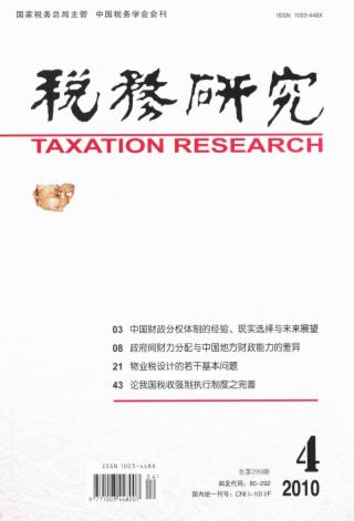 2010年 第4期 论坛 中国财政分析体制的经验、现实选择与未来展望(*) 丁菊红 政府间财力分配与中国地方财政能力的差异 陶勇 分税制下的财政体制改革与地方财力变化 刘玲玲 冯懿男 完善“省直管县”推进地方分税制改革 陈庆海 税制改革 物业税设计的若干基本问题 李梦娟 试论投资性房地产评估及其方法 王志芳 闫建勍 物业税改革对地区间税收分配差距的影响(*) 王敏 关于将集体建设用地纳入土地增值税征税范围的探讨 常新 单亮 土地增值税征管中存在的问题与建议 陈爱中 李达 关于物业税负担水平设计的几个问题 孙健夫 高房价视角下的房地产税制改革 曹明星 石坚 税法理论与实务 论我国税收强制执行制度与之完善 徐蓉 税法私法化趋势理论探源 罗俊杰 刘霞玲 诚实信用原则在税法上的适用探讨 邵伟杰 评我国税收优惠中的法律工具主义思想(*) 王霞 调查研究 关于湖南省企业所得税优惠政策实施情况的调查研究(*) 梁桂云 喻长庚 周兰翔 安徽省企业所得税优惠政策执行情况调查 安徽省国家税务局课题组 西安市关联外资企业所得税负担率变化研究 张天胜 吕行 吴铮 税收征管 建立纳税服务评价机制的设想与思路 四川省宜宾市国家税务局课题组 纳税服务机制设计路径探讨(*) 刘京娟 案例分析 企业往来账户涉税问题和成因分析及对策 胡波 胡海瑞 外国税收与借鉴 创新金融工具对传统所得税制的挑战(*) 王遥 发达国家纳税服务的主要经验 邵峰 李檬 张海波 富春雨 论文摘萃 完善我国地方税体系的思考 杨超文 税史研究 明朝抽分厂税收制度研究 姚国艳 徐伟勇 工作探索 完善我国税权划分的基本思路 潘明星 我国税收执法权划分探讨 王诚尧 税收风险管理的初步实践与优化思考 江苏省无锡市国家税务局《风险管理》课题组 《税务研究》撰稿须知 新疆地税信息化建设实践与探索 方章荣 学术动态 中国税务学会2009年全国税收理论研讨会观点综述 赵景华
