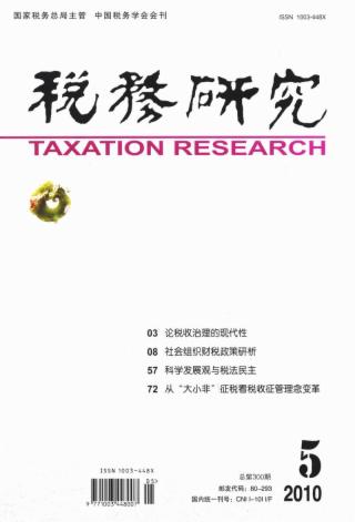 2010年 第5期 本刊特稿 论税收治理的现代性(*) 杨斌 论坛 社会组织财税政策研析 王名 董文琪 非营利组织税法规制的法理分析与完善 刘蓉 游振宇 非营利组织所得税免税政策 李青 我国基金会的税收制度 余晓敏 刘忠祥 张强 张秀兰 促进我国养老机构发展的财税政策(*) 黄燕芬 尹太兵 对我国养老机构税收政策的探讨 杨伟民 李冰 段林燕 税制改革 全面推行规范化增值税制度应立足予有效运行的科学抵扣机制 王建平 关于增值税、营业税合并问题的思考 龚辉文 对增值税“扩围”问题的探讨(*) 蔡昌 我国增值税收入流失的制度性因素及治理 张焱 我国建立境外旅客购物离境退税制度研究 刘隆亨 孙健波 完善现行出口退税管理办法的建议 杨金亮 李骄龙 增值税转型及对会计核算的影响 郭恒泰 税法理论与实务 科学发展观与税法民主 郑琳 科学发展观与财税法治、财税民主 范毅 基于税权的税收征纳关系探析 周承娟 完善我国税收法治的制度安排 赵芳春 税收征管 从“大小非”征税看税收征管理念变革 靳万军 税收征管组织模式改革取向及其路径选择 王国清 龚秋 论文摘萃 营业税改征增值税后的收入归属方案选择 杨默如 调查研究 增值税转型对江苏省沪市上市公司税负影响的实证分析 骆阳 肖侠 外国税收与借鉴 关于美国奥巴马政府税务新政的思考与启示 甘行琼 美国经济刺激计划政策工具的运用与反思(*) 陈华 张艳 工作探索 资源税改革的效益分析与政策建议(*) 刘晔 后危机时代机构性减税的思考 罗红 加强中央部门财政拨款结余资金管理的几个问题 鲁航 崔惠玉 宋阳 限制现金结算在税收管理上的意义 黄会营 观点摘要 观点摘要三则