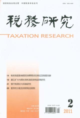 2011年 第2期 论坛 发扬成绩 开拓进取 服务税收事业发展 ——在中国税务学会2010年年会暨全国税收理论研讨会上的讲话 国家税务总局副局长 解学智 以促进经济社会科学发展为目标 为加快转变经济发展方式建言献策 ——在中国税务学会2010年年会暨全国税收理论研讨会上的讲话 崔俊慧 2010/2011年国际国内经济走势剖析(*) 陆百甫 税收制度影响居民消费需求的效应及制度创新 樊轶侠 建立扩大内需长效机制的财税政策研究(*) 蔡伟贤 王郅强 何帅 我国财税政策与居民消费的实证分析 武彦民 张远 税收负担对城镇居民消费的影响 李文 减税政策在“扩内需、促消费”中的局限性(*) 王剑锋 总部经济与地方财税 邓子基 李为巍 本刊特稿 银行税理论与实践研究(*) 徐为人 税制改革 开征社会保障税的理论依据及现实意义 刘植才 杨文利 关于开征社会保障税的若干思考(*) 马蔡琛 社会保障税的开征及其制度设计 李梦娟 《税务研究》撰稿须知 我国动漫产业税收政策研究(*) 李晶 局长视点 税收文化创新发展中的诚信建设 于海军 税法理论与实务 差异性分配及其财税法规制 张守文 经济国家与纳税人权利研究的新思路 冯辉 试论税法谦抑性(*) 王惠 税收征管 试析心理经济学框架下的个人税收遵从行为(*) 陈平路 邓保生 工作探索 促进收入公平分配的税收政策建议 刘传宝 财政审计视角下的增值税立法改进探讨(*) 罗涛 刘正均 建立和完善我国教育税收机制的思考 廖楚晖 魏贵和 论文摘萃 推动社会捐赠的税收政策探讨 王宏顺 促进现代服务业健康发展的税收管理对策 郭辉