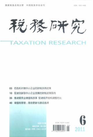 2011年 第6期 论坛 后危机时期中小企业的财税扶持政策 辜胜阻 杨威 李洪斌 促进创新型中小企业发展的财税政策取向 郭佩霞 中小企业发展约束及财税政策应对(*) 马恩涛 完善税收政策 支持中小企业发展(*) 刘成龙 推进科技型中小企业发展的税收政策(*) 张明喜 王周飞 发展战略性新兴产业的财税措施 杨森平 黎志杰 《税务研究》撰稿须知 税制改革 推进服务业增值税改革促进经济结构调整优化(*) 胡怡建 增值税管理:理念更新与路径选择 王建平 将交通运输业纳入增值税征收范围的思考 甘启裕 增值税转型对上市公司固定资产投资的影响研究(*) 卢锐 许宁 税法理论与实务 我国税收立法技术现状与改进 黄靖翔 岳树民 浅议我国税收代位权诉讼中的相关问题 杨峰 抗税法律责任和查处机制的立法完善 彭爽 局长视点 增值税优惠政策效果分析 汪建国 税收征管 关于“制度+科技”内控机制建设理论实践与探索 李岩 完善税收管理员执法风险内控机制的思考 朱庆民 王旭 观点摘要 观点摘要三则 案例分析 出口退税企业案例分析 张维娟 何宏伟 工作探索 论我国保险业税收制度的创新 袁辉 我国税式支出与基准税制界定的相关思考(*) 崔惠玉 企业重组税制缺陷与反避税安排 蔡昌 促进我国物联网发展的税收政策初探 张滢 对我国税收与价格动态影响关系的实证分析 熊鹭 外国税收与借鉴 发达国家“信息管税”的特点及对我国的启示 肖恺乐 论文摘萃 加强固定资产增值税抵扣管理的思考 张士民 孙涛 赵海霞 关于提高增值税起征点的探讨 何建堂 养老保险费改税税率确定浅析 朱祝霞 闫俊