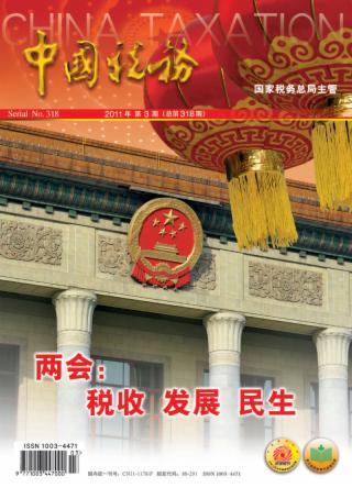 2011年 第3期 中国税务时评 发挥税收职能作用 促进保障和改善民生 时政纵览 大事 观点 数字 现象 政策 开拓创新 狠抓落实 努力取得党风廉政建设和反腐败工作新成效 石文刚 王素平 国家税务总局部署推进注册税务师行业党建、统战和发展工作 特别策划 两会:税收 发展 民生 税收调控大有作为 ——全国人大代表、国家税务总局总会计师汪康谈学习温家宝总理 所作政府工作报告的体会 汪康 车船税立法:充分尊重民意 ——全国人大常委、财经委员会副主任郝如玉谈车船税立法 孙一冰 收入分配:税收助推公平 ——访全国人大常委、中国人民大学教授郑功成 王素平 税收助推新一轮西部大开发大有可为 ——访全国人大代表、四川省国家税务局局长张崇明 王迎春 奋发有为 服务山西经济转型 ——访全国人大代表、山西省国家税务局局长许月刚 王跃峰 和谐税收促发展 杨福刚 高度重视 严格要求 以办促改 ——2010年国家税务总局办理“两会”建议、提案工作综述 王平 甘启裕 图片新闻 图片新闻 李永星 陈建 杨波 图片新闻 黄炳丁 揭发 詹晓东 图片新闻 姚楠 里尔 林相森 陈德来 安秀霞 图片新闻 李国亮 刘伟祥 张鸿艳 许宝德 财税观察 深化结构研究 探索税收与经济协调发展路径 沈中立 促进我国资源税改革的几点建议 张林海 税收征管法与刑法衔接的几个问题探讨 曲顺兰 路春城 张尉尉 以文化建设提升纳税服务水平 林声旭 跨越国境的“查税风暴” 李胜良 名家专栏 加强国史研究 推进民族复兴 陈奎元 中国产业结构调整的历史定位与起点 魏杰 朱雄兵 对话老潘 刘威威 法治视界 发票犯罪新特点及治理路径 张磊 双剑 斩断偷税“黑手” 海艳 张鹏 征纳互动 一切为了纳税人 王国民 范新 张建强 陆文军 强化服务需求分析 实施特色纳税服务 侯勃 数据中心快速发展 网络平台应与时俱进 李冰 业务指南 2010年我国出口退(免)税政策调整盘点 王文清 柳梅 滕晓勇 企业所得税弥补亏损若干问题的处理 陈玉琢 叶美萍 税收管理是大企业财务管理的核心 吴廷高 王冬生 税事动态 《第四届(2010年度)全国税收公益广告大赛获奖作品名单》 文化长廊 鹰的联想 曲慧霞 我是税收“小会计” 徐丽 放飞心灵的蝴蝶 舒瑾 徽州人与“皇粮国税” 方利山 詹新庆 “身边的税收”征文 税徽闪闪 温丽芳 奇迹·共赢 魏文忠 海阔凭鱼跃 天高任鸟飞 翟李民 山村小路 罗满生 海港收税 丁卫红 赵江 心田湾里飞出“金凤凰” 余东文 邱一鸣