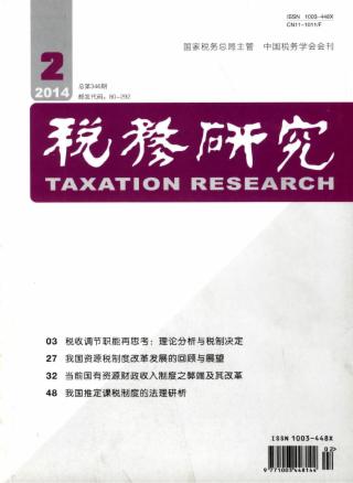 2014年 第2期 税务研究 税务研究 论坛 税收调节职能再思考:理论分析与税制决定* 闫坤 于树一 重新认识市场经济中的税收调控作用* 靳东升 李华 深化改革背景下优化税收调节三个关系的职能* 王华 沈亚飞 论经济转型期的税收调节问题 刘蓉 陈凌霜 税收调控问题的思考与认识* 岳树民 要素收入视角下税收对收入分配的调节 金双华 税制改革 我国资源税制度改革发展的回顾与展望 刘植才 当前国有资源财政收入制度之弊端及其改革 朱为群 缑长艳 资源税改革:基于理论与实践的演变逻辑* 蔡红英 胡凯 魏涛 对强化资源税职能作用的思考 先福军 试析煤炭资源税改革中的几个问题* 解洪涛 陈志勇 税法理论与实务 我国推定课税制度的法理研析* 郭维真 欠税公告制度的完善* 李建人 纳税保证生效的解释论分析 张尧 案例分析 有限责任公司整体变更为股份有限公司的个人所得税政策与征收管理 庄佳强 税收征管 我国电子商务税收稽征问题探讨* 白彦锋 张琦 完善我国电子商务税收征管的设想 武汉市国家税务局课题组 局长视点 提升税务机关公信力的有效途径 牟可光 外国税收与借鉴 美国电子商务税收政策及博弈行为对我国的启示* 李恒 吴维库 朱倩 税收政策与企业自主福利:中国现实与美国经验 朱飞 赵康 工作探索 我国企业境外上市的税收策略 钟腾飞 解宏 联邦制国家纵向税收竞争效应探究* ——基于不同政府类型的理论模型构建与数理分析 胡洪曙 郭传义 税史研究 清代前期涉税大事举要评析 王福兰 刘荣明 学术动态 首届“翠薇税收学术论坛”在上海举行 向东 论文摘萃 加强增值税小规模纳税人税收管理的建议 陈晓忠