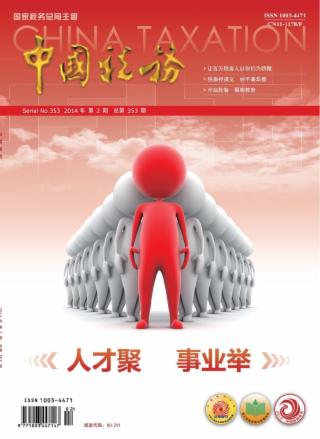 2014年 第2期 中国税务 中国税务 中国税务时评 让人才领军税收现代化的新征程 本刊特约评论员 时政纵览 大事 观点 政策 时政纵览时政纵览 数字 现象 现象 特别策划 人才聚 事业举 让百万税务人以你们为骄傲 国家税务总局党组书记 局长 王军 聚齐大爱育英才 ——首批全国税务领军人才选拔及培养工作综述 全国税务领军人才培养工作领导小组办公室 观点·声音 铁肩担道义 妙手著华章 刘威威 高永清 高宏丽 张群 莫负“领军”二字 综合管理班 傅晓东 纪律伴我们同行 税收经济分析班 郭龙 学习有三境 税务风险评估班 刘大平 选择·坚持·跨越 税收法制班 王晓云 相信未来 税务信息化管理班 张建民 胸怀税收 心系稽查 税务稽查班 孔向荣 刘建 对“BEPS”的中国思考 国际税收管理班 王懿 韩国税务核心人才培训简介 李纯璞 名家专栏 开启民智 昌明教育 ——访商务印书馆总经理于殿利 本刊记者 刘嘉怡 回忆增值税改革二三事 ——访财政部税政司原司长韩绍初 本刊记者 王平 刘威威 今日税官 用勤奋铺就“税”月人生 任恒君 为税消得人憔悴 敬业奉献终不悔 孙益新 徐国民 图片新闻 图片新闻 图片新闻 图片新闻 图片新闻 图片新闻 图片新闻 法治视界 偷逃税心理分析 邱慈孙 验票好习惯牵出的发票案 蔡天舒 滕峰 程高华 业务指南 长期股权投资特殊业务的会计与税务处理 高金平 善用税收租赁降低飞机租赁成本 王建军 政策解读 软件产业和集成电路产业企业所得税税收优惠政策解析(下) 杨臻 钟税官信箱 免税权是否可以放弃? 支付外籍人员一次性赔偿金如何缴纳个人所得税? 钟信官信箱 直销企业应如何缴纳增值税? 我公司如何确定租赁收入的营业税纳税义务发生时间? 税务.IT 云计算、大数据和税务管理智能化 鲁钰锋 云计算在税务系统的应用 ——以北京市国家税务局为例 乔晓锋 工作探索 依托信息化 加强税收风险管理 张琦 税收科研要接地气、显朝气、有底气 郑汀 加强城镇土地使用税管理的思考 李辉 戴贵勤 张彦忠 完善有奖发票之我见 雷小舟 曾方沅 保险业纳税评估中发现的问题及对策 李辉 纳税小提示 取得租赁押金也须纳税 企业接受假发票将受罚 新增实收资本到账勿忘缴纳印花税 征纳 围绕“激励”二字做文章 ——武汉市国家税务局启动“551”专业人才培养工程 张纯龙 徐庆华 叶翩 绩效管理提升服务效能 ——记广东省珠海横琴新区地方税务局绩效管理探索与实践之路 温彩霞 罗增庆 范丽华 文化长廊 走在乡间的小路上 李长江 税收在鄂北革命斗争三个时期发挥的重要作用 任志民 “ 我看营改增”征文启事