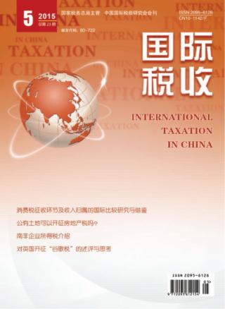 2015年 第5期 国际税收 国际税收 国际税讯 日本正式确定2017年消费税税率上调至10% 英国正式推行“谷歌税” 马来西亚消费税4月1日启动 外国游客可申请退税 中国与印尼签署税收协定议定书及谅解备忘录 印尼再修订投资税务条例 放宽减税优惠政策 缅甸政府致力提高税收占GDP比重 尼日利亚正式实施西共体统一对外税则 主编视点 主编视点 专题策划 消费税征收环节及收入归属的国际比较研究与借鉴(1) 国家税务总局税收科学研究所课题组 欧盟消费税制共性、特点及对中国的几点启示(1) 韩霖 周咏雪 部分OECD国家消费税的特征及借鉴(1) 高阳 李平 发展中国家消费税制比较及其启示(1) 龚辉文 外国专家特稿 大企业纳税人遵从风险管理(上) ——荷兰的横向监督方法(1) 马特海斯·阿灵克(2) 著 李纯璞(3) 译 法规选译 国家税务总局发布《关于非居民企业间接转让财产企业所得税若干问题的公告 》(中) 政策透视 落实BEPS行动计划 加强对外支付费用转让定价管理 王懿 各国税收纵横 公有土地可以开征房地产税吗? 何杨 满燕云 刘威 国外附加福利税探讨及借鉴(1) 白彦锋 张维霞 常怡 风险导向的现代化税务审计 ——美国大企业税收管理的经验和启示 夏智灵 简讯 “走出去”税收服务座谈会在北京召开 “走出去”税收 南非企业所得税介绍(1) ——中国“走出去”企业投资南非税务影响与风险关注 Rendani Neluvhalani 企业咨询有限公司 南非) 邱辉 企业咨询有限公司 上海 200120) 蔡伟年 企业咨询有限公司北京分公司 北京 100738) 探索跨国税源管理新径 提升依法治税绩效 金亚萍 关于完善我国居民境外所得个人所得税政策和征管机制的思考 吴巧伶 梁若莲 研究探索 我国房地产税改革的国际借鉴 浙江省国际税收研究会课题组 税收实务 完善“受益所有人”政策规定与管理办法的设想(1) 嵇峰 国际税事评说 对英国开征“谷歌税”的述评与思考 张滢