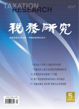 2015年 第5期 税务研究 税务研究 本刊特稿 税收收入视角下之稳定税负选择 杨元伟 财税论坛 构建扶持小微企业发展的税费政策体系* 张斌 “新常态”下支持小微企业发展的国际经验及税收措施* 任强 杨金亮 创新型中小微企业的财税支持政策研究 于洪 试析我国小微型高技术企业税收现状 周晓蓉 王三江 小微企业组织形式及其所得税政策之优化* 贺宏 税制改革 资源税改革应厘清三个问题* 刘明慧 赵敏婕 基于政府间财力配置视角的资源税改革效应* 张伦伦 钟毅 资源税功能定位的再认识及完善措施 单顺安 煤炭资源税改革对煤炭产业发展的影响 刘楠楠 资源税效应与资源税改革* 王萌 财税法治 基于财政透明视角的纳税人权利保护* 谷成 张航 推进预算公开保障纳税人用税监督权* 王银梅 孟祥菁 饶玲玉 国际税收仲裁机制与我国的税收话语权 李时 秦泮义 案例分析 一起特别纳税调整案的启示 黄晓 陈文裕 自产产品视同销售的税务处理 马泽方 税收管理 基于跨国税源监控的税收风险识别框架探究 张喆 王微 完善企业所得税后续管理的路径 唐绍胜 张英明 程日华 推进纳税服务现代化的策略 祝洪溪 国凤 靖树春 浅议互联网金融税收征管 严卫中 研究探索 我国金融业“营改增”的难点及改革思路 徐达松 “营改增”对商业银行税负的影响分析 刘代民 张碧琼 “营改增”后的快递业税收政策完善 孙园 胡柳 金融业“营改增”征收模式及税率选择 罗绪富 促进江西经济发展的政策取向 李德平 环球税收 国外水资源税费实践及借鉴 马克和 日本最新税改评介* 吴小强 财税史鉴 民国后期综合所得税研析 欧阳秀兰 曾耀辉 学术动态 关于评选“邓子基财税学术论文奖”的通知