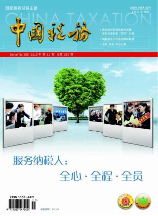 2013年 第11期 中国税务 中国税务 中国税务时评 将纳税服务工作推上更高层次更高水平 本刊特约评论员 税务要闻 用好批评和自我批评武器 深刻检查剖析“四风”问题 ——国家税务总局党组召开教育实践活动专题民主生活会情况通报会 本刊特稿 税务系统深入开展党的群众路线教育实践活动 为民 务实 清廉 边整边改 提升服务 广东省地方税务局党组 贯彻“三个三”要求立行立改显成效 海南省地方税务局党组 坚持求真务实 力求整改实效 大连市地方税务局党组 特别策划 服务纳税人:全心·全程·全员 纳税服务工作的回顾和展望 ——访国家税务总局纳税服务司司长张树学 本刊记者 孙一冰 姚东 为民 务实 同心汇聚 ——访浙江省财政厅厅长、省地方税务局局长钱巨炎 文 陈黛斐 王平 陈世亮 金胤秋 完善机制 转变职能 更好地为纳税人服务 文 山西省国家税务局局长 王学东 以纳税人满意度为第一标准 ——湖北省国税系统转职能 改作风 优化纳税服务调查实录 本刊记者 刘威威 “五位一体”构建维权服务新格局 文 杜晓华 陈望秀 周振华 “纳税服务与客户服务有共通之处” ——访京东商城集团税务副总裁蔡磊 本刊记者 孙一冰 和谐纳税 服务先行 本刊记者 姚东 孙一冰 王平 局长论坛 公共行政的“天.地.人” 四川省国家税务局纪检组长 秦凯 国税“大数据”研究 湖南省国家税务局总审计师 王宏伟 财税观察 完善我国纳税人权利保护机制的思考 文 王仙虎 纳税服务的国际新动向:为纳税人预填申报表 文 李林木 图片新闻 图片新闻 图片新闻 图片新闻 图片新闻 图片新闻 图片新闻 图片新闻 业务指南 公司分立业务相关法律主体的税务处理 文 高金平 厘清税会差异 做好纳税调整 ——基于《小企业会计准则》的分析 文 郭侃 纳税小提示 签订劳动合同与否纳税各有不同 企业年金个人缴费部分须纳个人所得税 不要轻信“电话退税” 工作探索 “五环节封闭式”税源专业化管理新模式初探 文 付和平 刘志勇 付晓军 周全林 落实全员岗责实施“四位一体”绩效管理 文 黄玉远 新媒体语境下如何做好税收宣传工作 文 谭军 阚文东 杜秀玲 税事动态 加强纳税服务的新实践 山东 文 段培真 着力提升纳税服务工作水平 江西 文 毛永青 何仁辉 陈全太 “模拟代理人”:保障纳税人缴明白税 江苏 文 顾超 季桂荣 钱俊 尽责圆梦 美在基层 内蒙古 文 任恒君 安博 第九届泛珠三角区域地方税务合作会议在贵阳召开 贵阳 文 叶欣 钱阳 征纳互动 “纳税人之家”:搭建沟通共享平台 文 李芬 降低企业税收风险一二三 ——以某有色金属有限公司为例 文 王群 洪旭 文化长廊 小店税事 文 张育盛 税收伴我成长 文 郑浩枫 中国税务杂志社成立25周年 中国税务杂志社大事记(1997—2009)