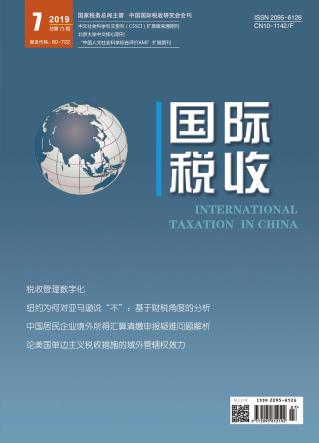 2019年 第7期 主编视点 专题策划 简化税收遵从与新技术的使用 税收管理数字化 阿里云 钉钉 阿里研究院 著 陈新# 译 简化税收遵从和税收征管数字化 黄权辉* 数字化对自愿纳税遵从的影响 德拉加娜·马尔科维奇 著 黄晓珊译 大数据分析——税收征管的有效工具 ——税收征管的有效工具 税务管理的数字化转型之路 跨境税收 纽约为何对亚马逊说“不”:基于财税角度的分析 白彦锋 史大譞 转让定价税制对企业利润转移的影响研究 何杨 夏安 国际税事评说 从“贝克汉姆法令”探析运动员跨境税收征管问题 高照钰 "走出去"税收 CFC规则完善下“走出去”企业的税务风险分析 ——以赴中国香港地区上市公司为例 黄夏岚 房越 税收实务 中国居民企业境外所得汇算清缴申报疑难问题解析 宋兴义 无形资产估值中折现率的分析和选用 ——从国际转让定价角度的探讨from international transfer pricing perspective 孙一顺 舒伟 案例点评 境外公司间接转让境内公司股权案例分析 潘虹 沈武 斯丹丹 王瑜 各国税收纵横 丹麦个人所得税概述及征管经验借鉴 王婷 伍岳 研究探索 论美国单边主义税收措施的域外管辖权效力 尹磊 葛辉 完善中国税收居民个人管理机制的若干建议 嵇峰 国际税讯 国际税讯8则 龚辉文