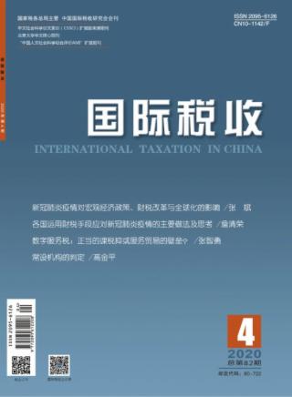 2020年 第4期 专题策划 新冠肺炎疫情对宏观经济政策、财税改革与全球化的影响 张斌 各国运用财税手段应对新冠肺炎疫情的主要做法及思考 詹清荣# 支持疫情防控税收政策国际比较分析 李娜# 应对公共卫生事件公益捐赠扣除研究:中美比较的视角* 聂淼# 银行保险业应对新冠肺炎疫情相关举措的财税政策分析 张豪 寇薇 李晓蕾 曹思乐 “经济数字化国际税收规则研究”专题征文 数字服务税:正当的课税抑或服务贸易的壁垒?* 张智勇 专访 纵览经济数字化背景下国际税收规则的重塑——专访IBFD国际税法专家Victor van Kommer教授* 韩霖 高阳 田芸芸 跨境税收 所得税的出现是国际税收制度的逻辑起点——以美国所得税的诞生为例 高阳 消费地原则在B2B 跨境转让服务或无形资产中的应用* 冯秀娟 郝万丽 “一带一路”税收 “一带一路”倡议背景下自由贸易试验区离岸贸易税收政策的国际借鉴 冯敏 税收协定服务“一带一路”建设的思考与建议 曹琦欢 比较税制 美国税收现代化行动计划简介与启示 何振华 旷文雯 陶九虎 案例点评 常设机构的判定——新加坡Y公司的综合案例 高金平 税收实务 非居民企业间接转让财产应税所得的政策执行问题探讨 郑波 蔡杰