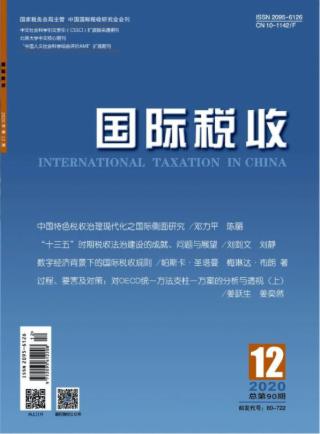2020年 第12期 本刊特稿 中国特色税收治理现代化之国际侧面研究* 邓力平 陈丽 “十三五”时期税收法治建设的成就、问题与展望 刘剑文 刘静# 专题策划 数字经济背景下的国际税收规则 帕斯卡·圣塔曼 梅琳达·布朗 *著 陈新 #译 OECD“双支柱”改革方案之国内应对* 高金平 跨境税收 完善我国税收政策体系以消除混合错配安排的影响 高健敏 “一带一路”税收 优化“一带一路”税收情报交换机制提升征管合作质效 吴志峰 石赟 季洁 波兰近期税收改革简介及对我国的启示 沈思 荆宜松 税收实务 运用大数据推动税收监管创新的思考* 李平 数字经济对企业税收遵从的影响及对策 王丽娜 研究探索 出口退税对中国对外直接投资的效应分析——基于省级面板数据的实证研究 许云程 粤港澳大湾区所得税征管协调与合作研究* 孙伟 张娜 苏区进出口税征收管理回顾与启示* 欧阳秀兰 曾耀辉 打开了解世界税制发展的一扇窗——《世界税制现状与趋势》书评朱青 打开了解世界税制发展的一扇窗——《世界税制现状与趋势》书评 朱青