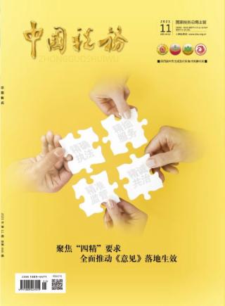 2021年 第11期 要闻 要闻 本刊特稿 深化税收征管改革服务国家治理现代化 王军 特别策划 聚焦“四精”要求全面推动《意见》落地生效 蹄疾步稳推进《意见》落实见行见效深化征管改革 本刊特约评论员 上下联动聚合力 统筹兼顾抓落实 ——全国税务系统贯彻落实《意见》开局良好成效初显 国家税务总局《意见》落实办公室 以“四精”为指引推动《意见》落实落细 李旭红 写好首善之区的“四精”答卷 高宏丽 黄诗睿 刘珂 通讯员 赵倩 张博 精细服务:百姓满意的民心工程 胡素霞 周子龙 田东波 武征 构建精准监管体系探索智慧税务浙江路径 陈龙 虞立教 黄珣 以“网”集成 以 “数”赋能 推动精诚共治取得示范性成果 ——访国家税务总局河南省税务局党委书记、局长孟军 袁品涵 浓墨重彩绘就深化税收征管改革广东画卷 翁汉豪 蒋琳珊 “精确执法”路 四川新探索 詹晓攀 黄柳 建党百年 新中国税制的“预演” ——纪念《中华苏维埃共和国暂行税则》颁布90周年 刘佐 从“三线”建设中追寻初心使命 邓犇 “深化税收征管改革之我见”征文 发挥组织保障和人力支撑作用为进一步深化税收征管改革保驾护航 马文辉 加速数据驱动实现精准监管 叶向东 强化基层税务机关精准监管的思考 孙荣华 姚艳凤 袁晓辉 政策解读 解读《关于完善住房租赁有关税收政策的公告》 严颖 程慧敏 业务指南 研发费用税前加计扣除新政解析 高金平 优化整合系统赋能退税提速 李强 熊月所 王文清 工作探索 以大数据应用开启税收服务和监管新篇章 吴蔚 周敏颖 完善税收违法“黑名单”制度更好提升税收遵从度 石爱国 袁野 进一步提升执法精确度的思考 钱立平 完善我国资本弱化管理的几点思考 张青 周文鑫 如何规范行使税收优先权 梁峰 经验点滴 破解基层监督难题 提高基层监督能力 杨斌 打造“和风丽景”党建品牌 韦帮照 洪雷 “七个结合”推动党史学习教育深化 赵巍 “四精”引领 对标“四度” 陆永辉 尤小辉 税海短讯 15 则 征纳互动 治沙路上的税收故事 赵灵芝 吕韬 探寻幸福杭州背后的“税收密码” 卢婵婵 王荪怡 以数治税 打造智慧办税新体验 王建军 陈海韵 文化长廊 “繁”与“减”并存的宋代商税 ——从《清明上河图》中一个画面谈起 胡永华 丁向阳 赵奢的“说理式执法” 程菲菲 短视频 一封红色家书的革命嘱托 税务主播带您逛“艺术节” 2分钟了解研发费用加计扣除新政策 家业 “天路”变通途 两个小青年