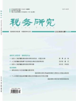 2023年 第10期 新时代 新征程•税收现代化 促进人口高质量发展的税收政策体系现状、问题及对策* 樊勇 邵琪 人口高质量发展背景下促进积极生育的财税政策研究* 范子英 曾艺 促进人口高质量发展的税收政策完善* 何代欣 朱钰凤 调查研究 绿色税收助力经济高质量发展的思考 ——基于江西省的调查 国家税务总局江西省税务局和江西财经大学联合调研组 个人所得税在推动高质量发展促进共同富裕中的作用与完善 ——基于济南市居民收入和个人所得税情况的调查 国家税务总局济南市税务局调研组 税制改革 激励科技创新人才的个人所得税政策研析 鞠铭 完善我国个人所得税专项附加扣除制度的建议* 张兆强 马心怡 石坚 我国个人所得税住所标准探析 陈艺婧 “数字经济与税收治理”征文 论数字经济背景下的国内税收治理 杨志勇 中国税收治理现代化:构建法治与数治双翼治理新格局* 袁娇 成文倩 王成展 税收法治 税法典体系结构的设计和创新 施正文 基于合作共赢的财税法域外效力研究 刘力 徐鹏博 案例分析 司法拍卖包税条款中买受人的税费负担范围 ——以J公司拍卖合同纠纷案为例 张旭 环球税收 应对气候变化的税收挑战与政策建议* ——基于全球公共品融资的视角 何杨 张聪 防止税收协定滥用的主要目的测试条款:构成要件与法律适用* 王家俊 孟令军 王金强 适应性治理视域下全球数字税制变革的再审视 陈虎 研究探索 完善我国政府债券所得税政策的思考* 温来成 余燕 小微企业所得税优惠政策研析* 李晶 李文明 韩庆岩 我国金融税制演进:基本轨迹、主要特征及改革取向* 杜爽 齐婉彤 税收管理 中国式现代化视角下的税务稽查现代化路径探索 张民 沈怡 混合销售税务处理规则:历史演进、现实困境与优化* 臧东娥 田立强 景宏军 数字经济背景下构建税收治理新格局的路径探究 黄成敬欣 王志平 于金秋
