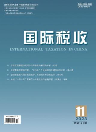 2023年 第11期 专题策划 全球反税基侵蚀规则中选择条款的解读与分析* 杜莉 全球最低税实施过渡:“走出去”企业面临的关键挑战与应对* 吴小强 全球最低税与国际税收竞争:有效税率和政策选择 胡云松 国际财税动态研究 美国现代供给侧经济学下的税收发展动向 王智烜 蔺涵婧 戴思佳 GloBE背景下的美国最低税* 鲁文·S·阿维-约纳 穆罕纳德·塞利姆 # 著 朱晓丹 译 跨境税收 联合国税收协定范本12B条的适用性研究* 陶紫凝 “一带一路”税收 共建“一带一路”背景下中非税收合作机制探析 张泽忠* 许悦 调查研究 “走出去”企业知识产权所得的性质认定及税收影响 ——以生物医药企业海外合作研发业务为例 李俊珅 姜杉 许淼 研究探索 个人所得税综合所得扩围改革研究 ——论经营所得的纳入 姜英爱