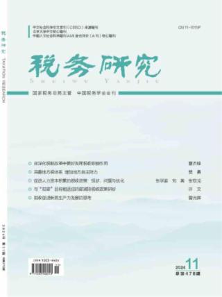 2024年 第11期 学习贯彻党的二十届三中全会精神 在深化税制改革中更好发挥税收职能作用 曹杰锋 完善地方税体系 增加地方自主财力* 樊勇 健全有利于高质量发展的税收制度* 马光荣 霍梦琪 专题策划 促进人力资本积累的税收政策:现状、问题与优化* 张学诞 刘奥 张双龙 促进人力资本发展的税收政策体系完善* 石绍宾 尹星怡 财税政策赋能人才建设的路径探究 马金华 阳敏欣 税制改革 与“双碳”目标相适应的碳减排税收政策研析 许文 促进碳减排的税收政策优化 黄洪 向严诚 徐扬诗雨 欧盟碳关税实施背景下的我国碳税制度设计* 崔志坤 王思雯 祖琪琦 局长视点 税收促进新质生产力发展的思考 曾光辉 “数字经济与税收治理”征文 数据要素价值化及涉税问题探讨* 杜剑 滕丹妮 联邦学习技术在税收风险管理中的应用构想* 温有栋 黄婷 罗良清 调查研究 优化平台经济税收治理的思考 ——基于青海省海东市数字经济业态的调研 青海省海东市平台经济税收调研组 税收法治 交易无效时税款返还之判断基准与规则适用* 张弓长 论税务行政争议的调解适用范围* 廖仕梅 经济正义下数字税的功能定位与规范实现 刘晓萌 环球税收 数字经济背景下跨境交易增值税改革的国际经验借鉴 燕晓春 研究探索 税收政策推动新质生产力发展:基于技术创新视角 计金标 李震 环境保护费改税是否提高了外商直接投资质量* 刘晔 占思诺 优化税收营商环境对市场活力影响的分析* 于佳曦 杨志伟 曾淇 社会保险费征管体制改革与企业纳税遵从* 何娜 毛谢恩 税收管理 再生资源行业税收征管存在的问题与完善建议* 杨宁 政府部门协同共治提高企业税法遵从度研究* 吴笑晗 董键